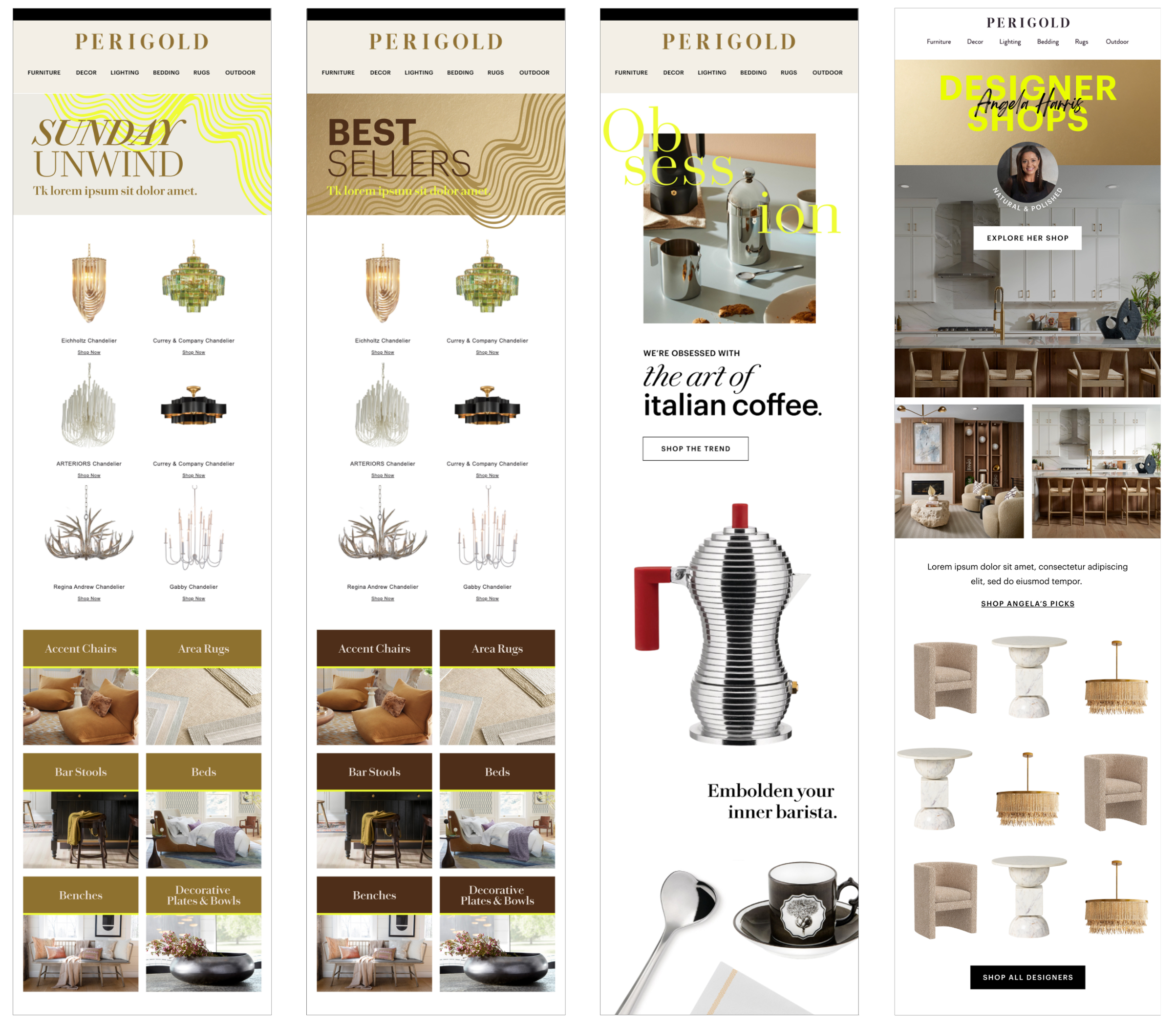 Perigold redefines luxury: sophisticated and confident, yet uniquely fresh and essential, offering a fresh, distinct blend of the luxury our customer knows and the luxury they didn’t know they needed.
